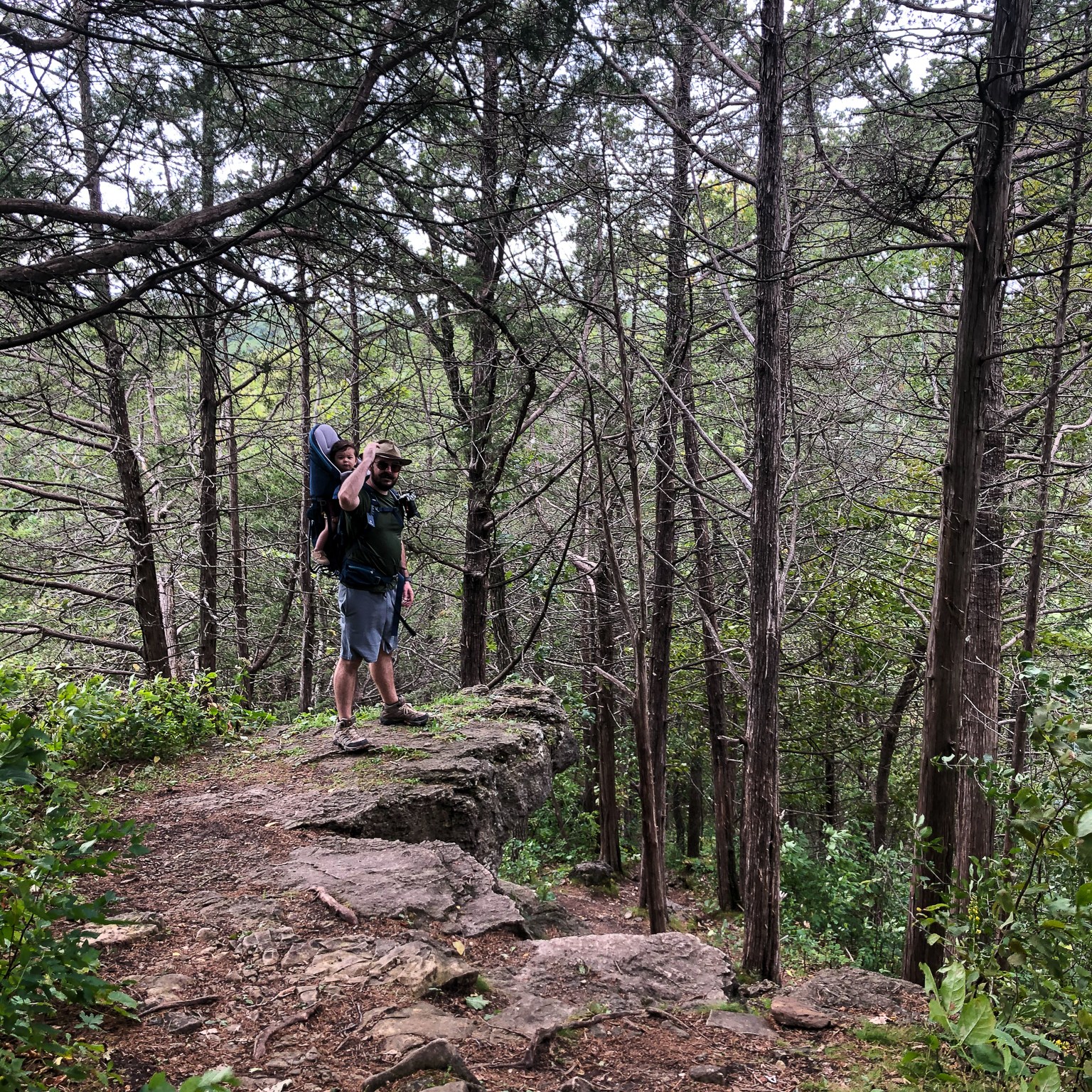 Our hike took an unexpected detour or “bonus trip” as we call them when there was a trail that split off to the right. Xiao argued, that according to our paper map the next split we should take it. Looking at my cached All Trails map I wasn’t so sure (GPS still works without cell service). We decided to take a gamble on it and headed into the woods where the trail got narrower and narrower. I check my phone again and All Trails has crashed, I lost my cached map! But did we stop? Nope! How about when there were fallen logs across the trail? No again! How about branches so low you had to push them out of the way? Nah! We continued for our predetermined 10min commitment of trying the trail out. Within 5min we ran into some deer hunting stands… In a park… Hmm this doesn’t seem like the right way… As you can see on the image above we ‘detoured’ our way out of the park. Turning around we made it back to the main trail and continued on until we actually found the right turn we were looking for.