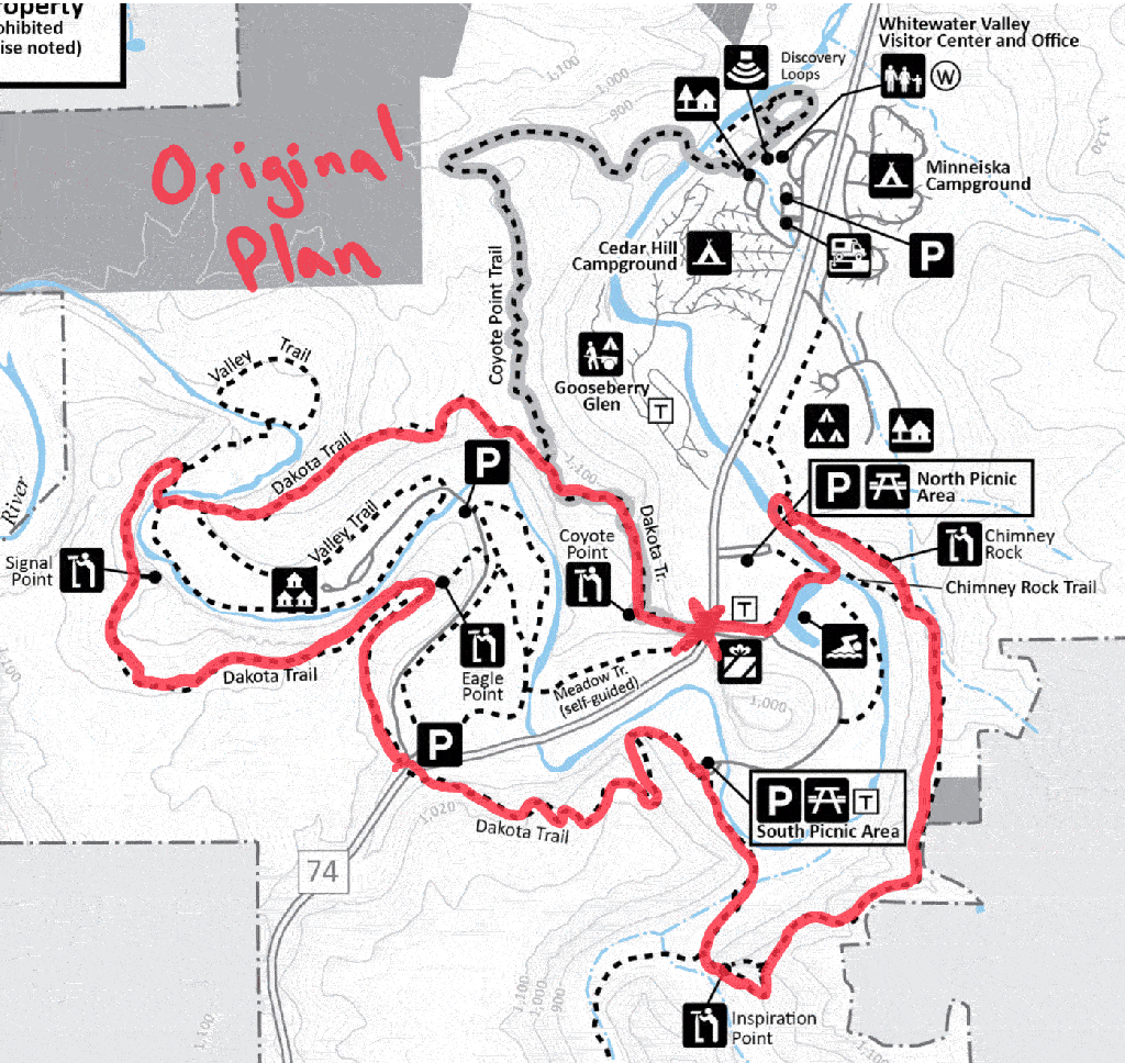 By the time we arrived at Whitewater River it was already 2pm. Clearly our plan of doing the whole Dakota Trail wasn’t going to work, so we enjoyed some time by the stepping stone bridge and planned an alternate route.