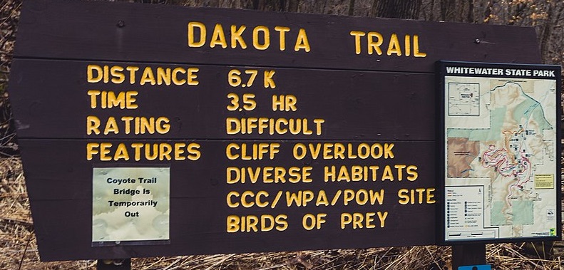 Whitewater State Park Dakota Trails Loop is a 3.9 mile moderately trafficked loop trail located near Altura, Minnesota that features a lake and is rated as moderate. The trail offers a number of activity options and is best used from May until October. Dogs are also able to use this trail but must be kept on leash.